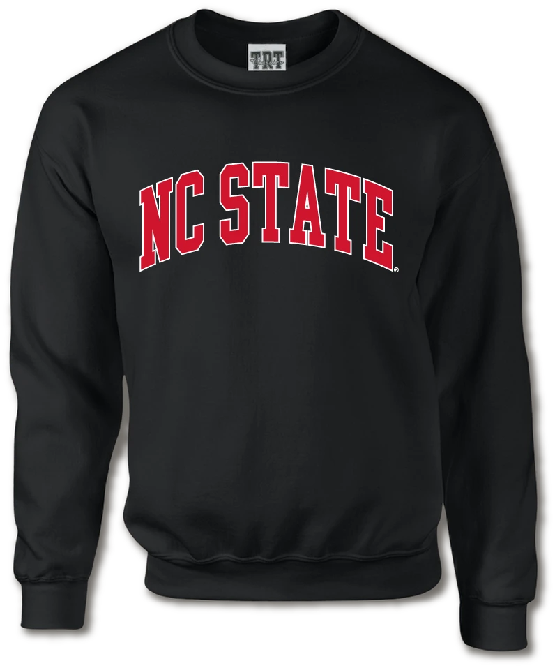 North Carolina State Wolfpack Black Arched Heat Sealed NC State Crewneck Sweatshirt