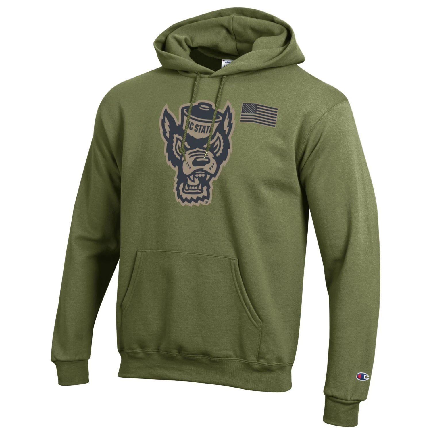 North Carolina State Wolfpack Champion Cargo Green Wolfhead Salute To Service Hooded Sweatshirt