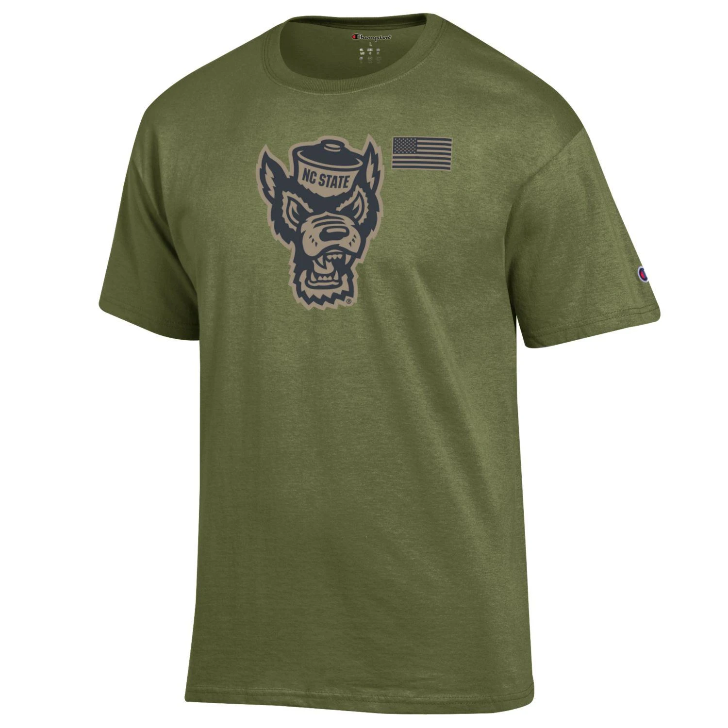 North Carolina State Wolfpack Champion Cargo Green Wolfhead Salute To Service T-Shirt