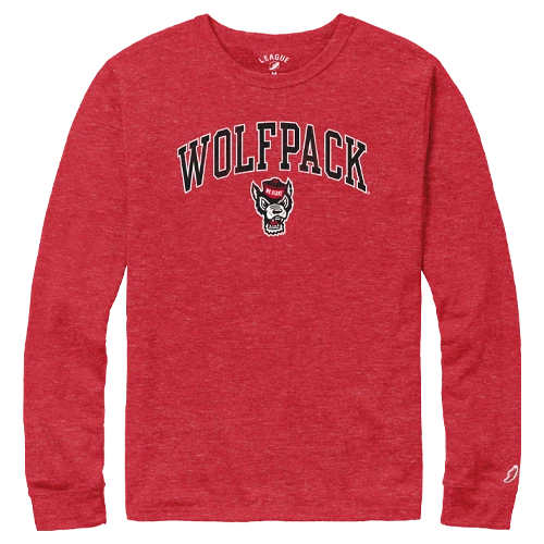 North Carolina State Wolfpack Heather Red Arched Wolfhead Long Sleeve T-Shirt