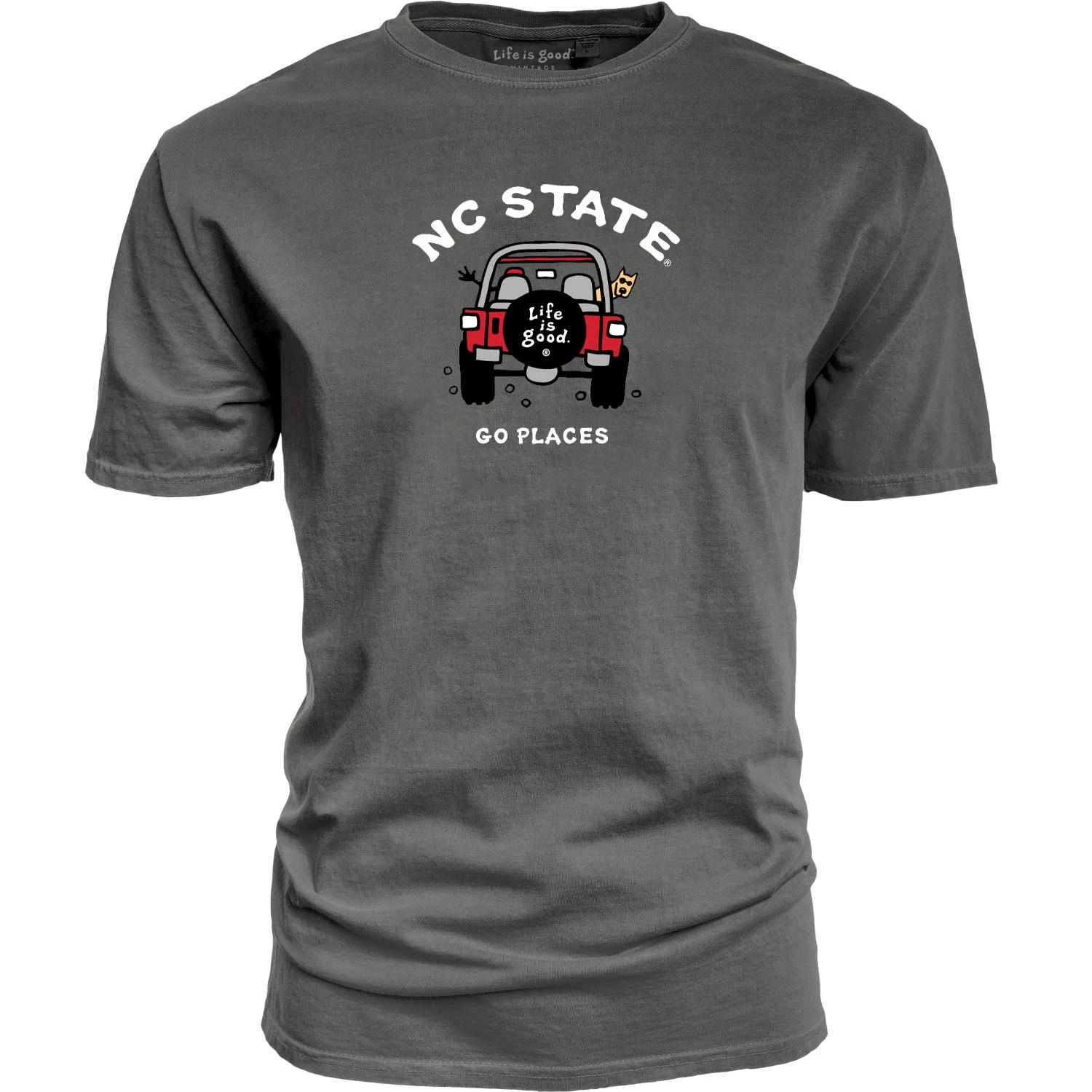 North Carolina State Wolfpack Life Is Good Black Dyed Ringspun Jake 4×4 T-Shirt