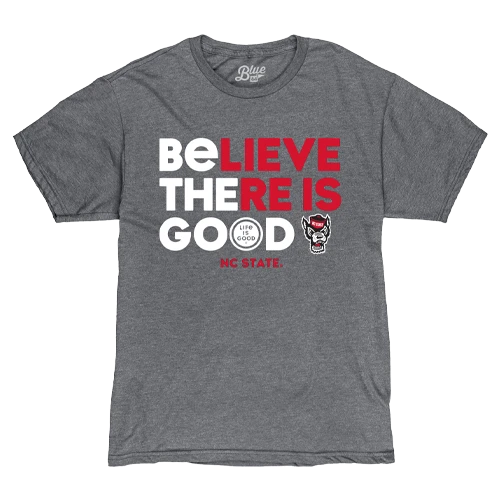 North Carolina State Wolfpack Life is Good Heather Grey Believe T-Shirt
