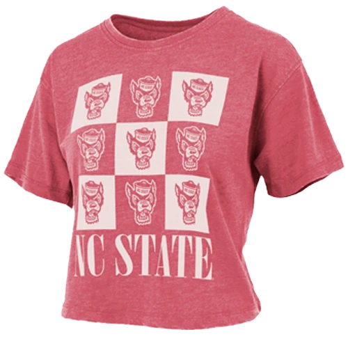 North Carolina State Wolfpack Women’s Heathered Red Checkered Wolfhead Crop Top