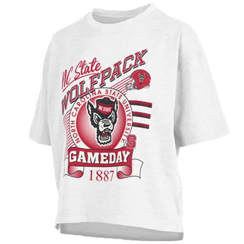 North Carolina State Wolfpack Women’s White Calgary Wolfhead Oversized Crop Top