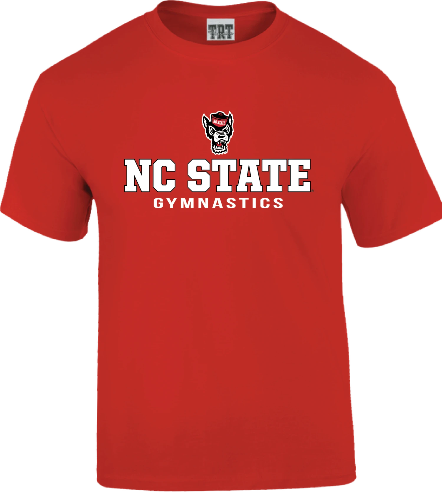 - Screen printed NC State Gymnastics wordmark and Wolfhead logo